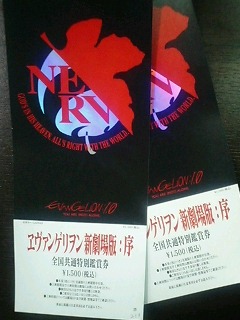 『ヱヴァンゲリヲン新劇場版:序』前売り券の発売日だよね。